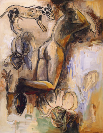 「植物美學」是楊識宏在1980年代末到1990年代初的重要創作風格,他以植物的樣貌和生命歷程為靈感,描繪從萌芽、生長、盛放到凋零的自然變化,呈現生命循環的節奏與韻律。作品融合東方水墨的空間感與西方的色彩光影,畫面既柔和又充滿能量,他不只是畫植物,而是讓藝術成為記錄生命痕跡、感受時間流動的一種方式。