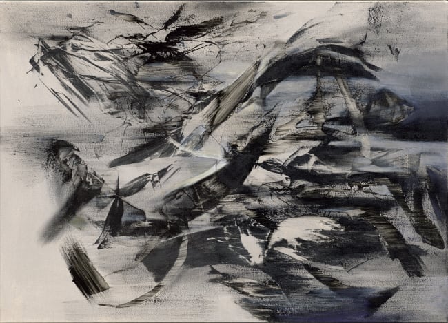楊識宏受到西方作家 James Joyce「意識流文學」啟發,將東方書法精神與西方文學理念融合,畫面上,他借鑑中國書法中狂草的奔放筆勢,筆觸自由且充滿節奏感。作品則以水墨為主,運用黑白光影與留白來展現東方美學的深度。「骨法」與「氣韻」成為他表達內在精神的重要語彙,筆法與墨色的交織,使整體畫面既有力量,也充滿靜謐的韻味。